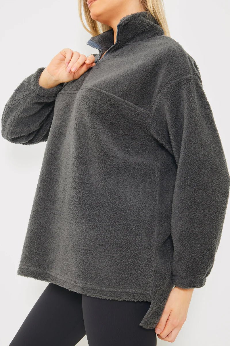 This Borg Sweater is the perfect cosy essential. The soft fabric is perfect for lounging or staying active on chilly days. Featuring a relaxed fit. ideal for throwing on with leggings or joggers for a comfy and stylish look.