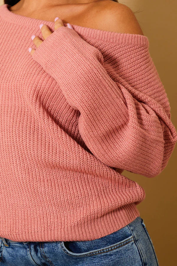 Dusty Off The Shoulder Knitted Jumper