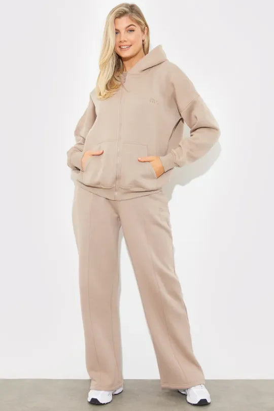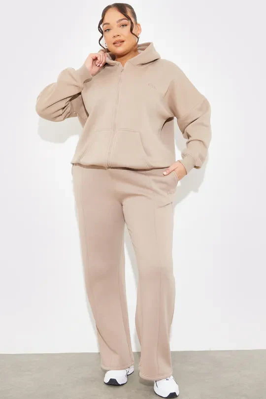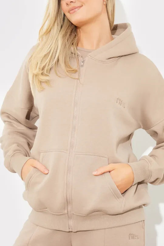 Layer up in style with our new mocha embroidered zip up jersey jacket. Pair with comfy joggers.