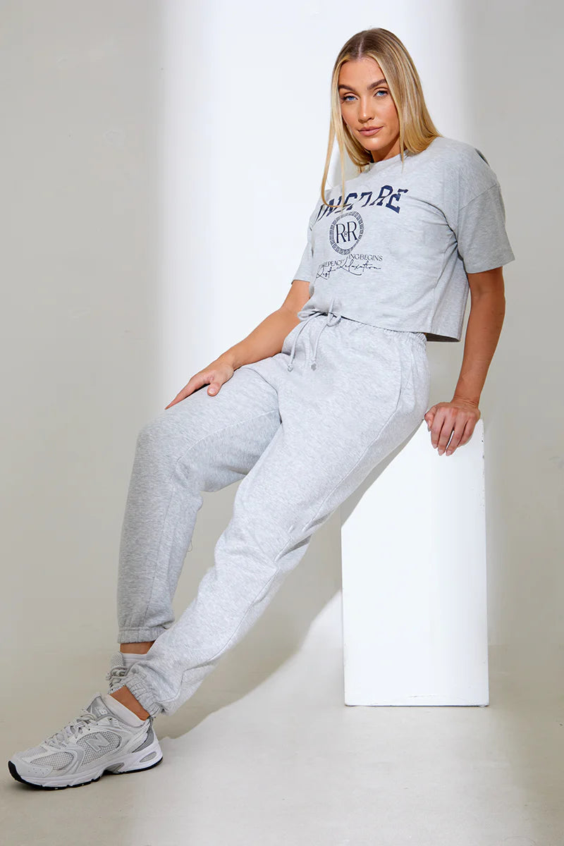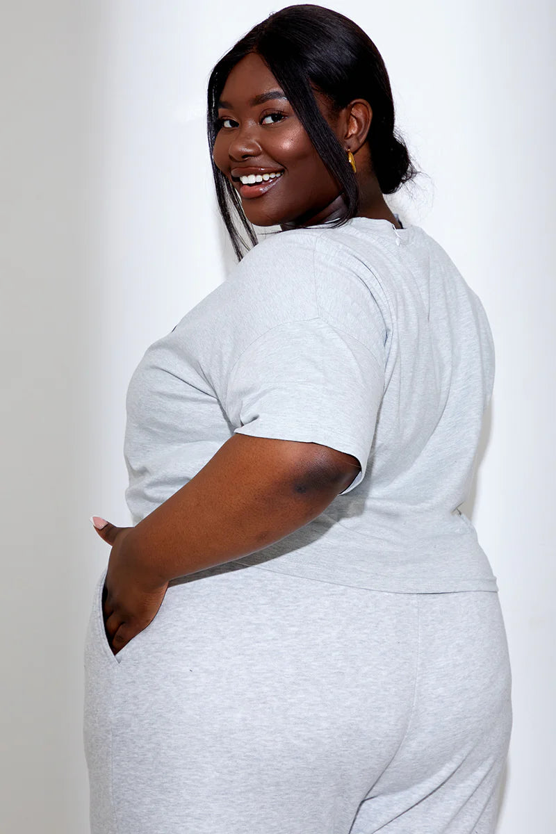 This Grey Graphic Printed Boxy Crop Top is the ultimate activewear essential. The comfy fabric and relaxed fit make it perfect for your workout. Pair it with leggings for a sporty-chic look.