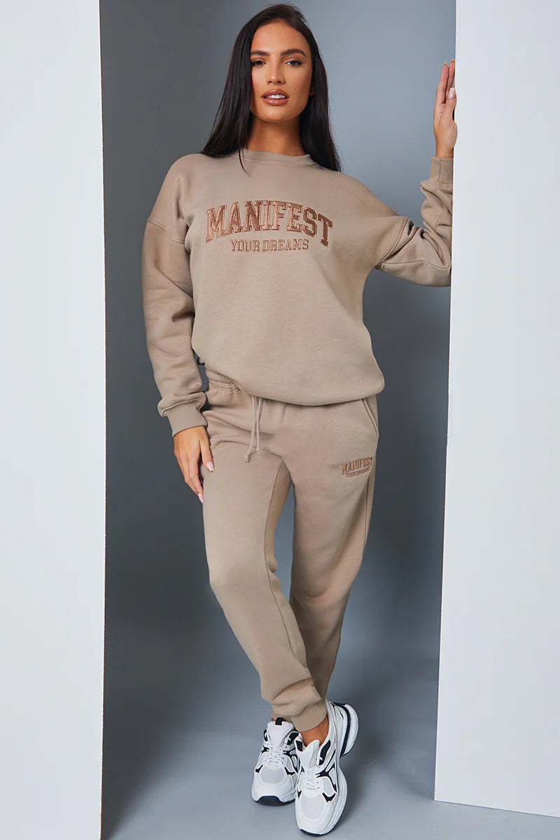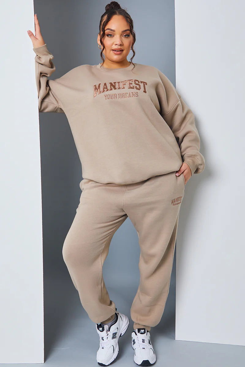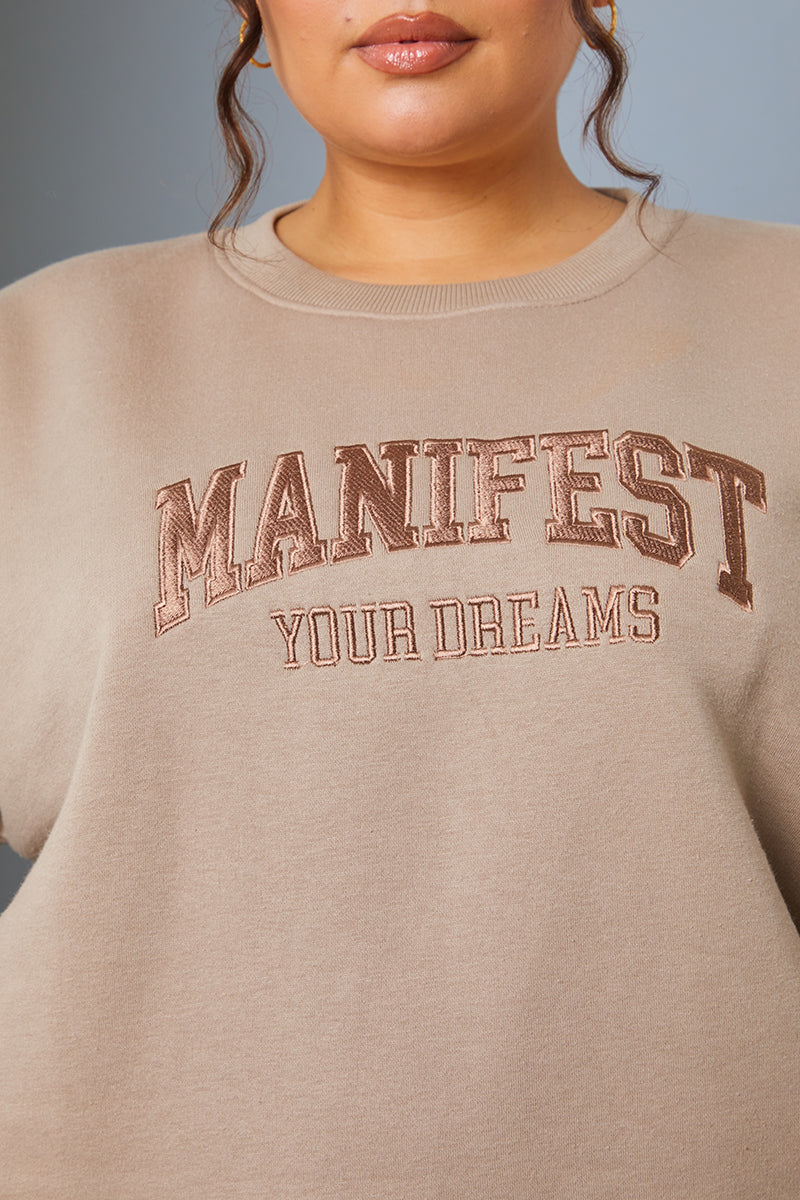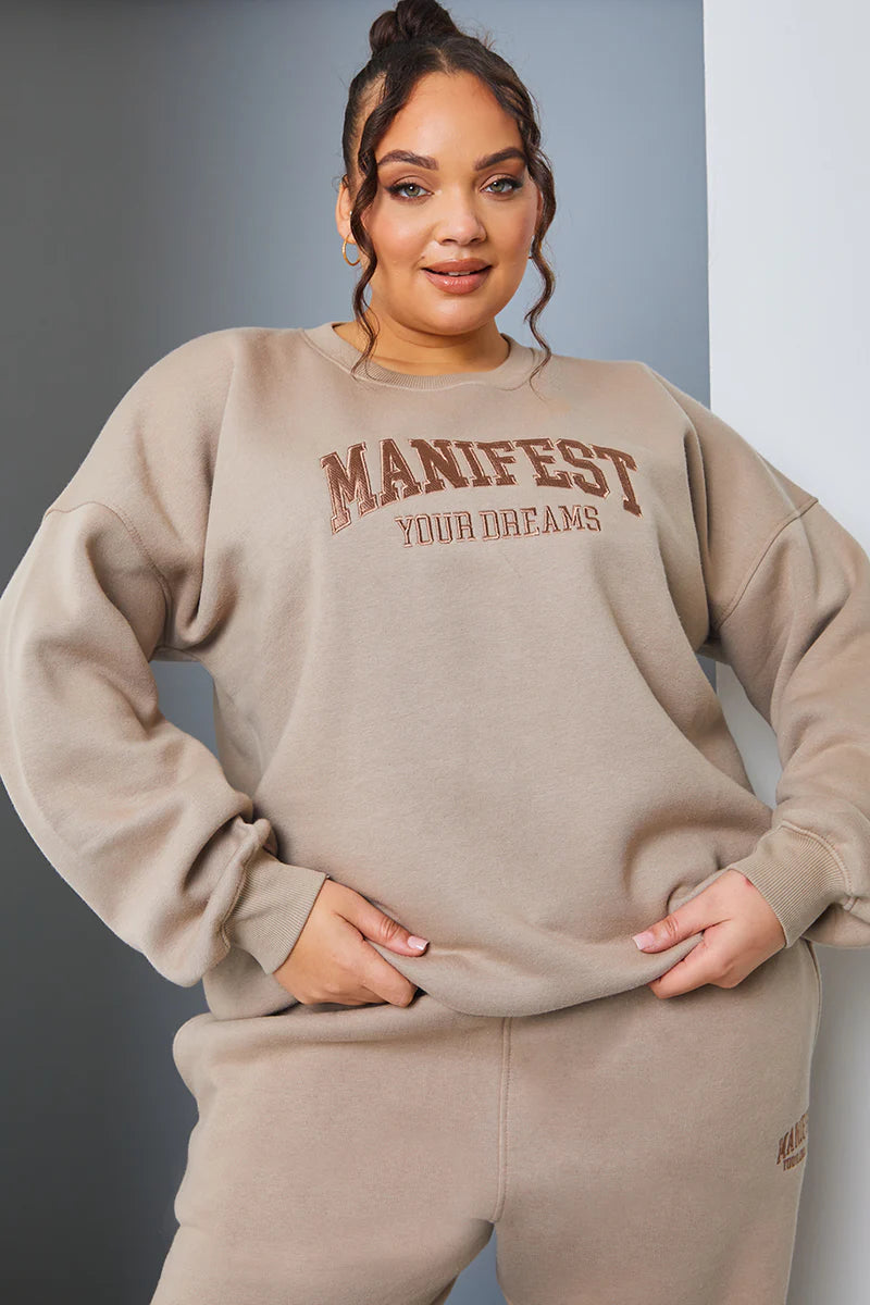 Elevate your wardrobe with this essential sweater a true must have! Featuring a 'Manifest your dreams' slogan. this sweater will continue to inspire you everyday! Create a chic fit by pairing it with trainers and our matching joggers.