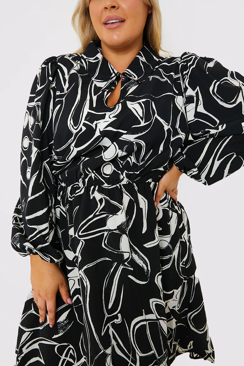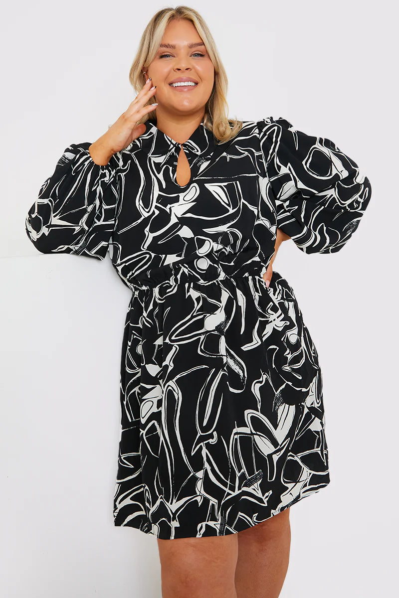 This monochrome midi dress is perfect for the new season! With a teardrop collar pair with heels for a look that's sure to turn heads.