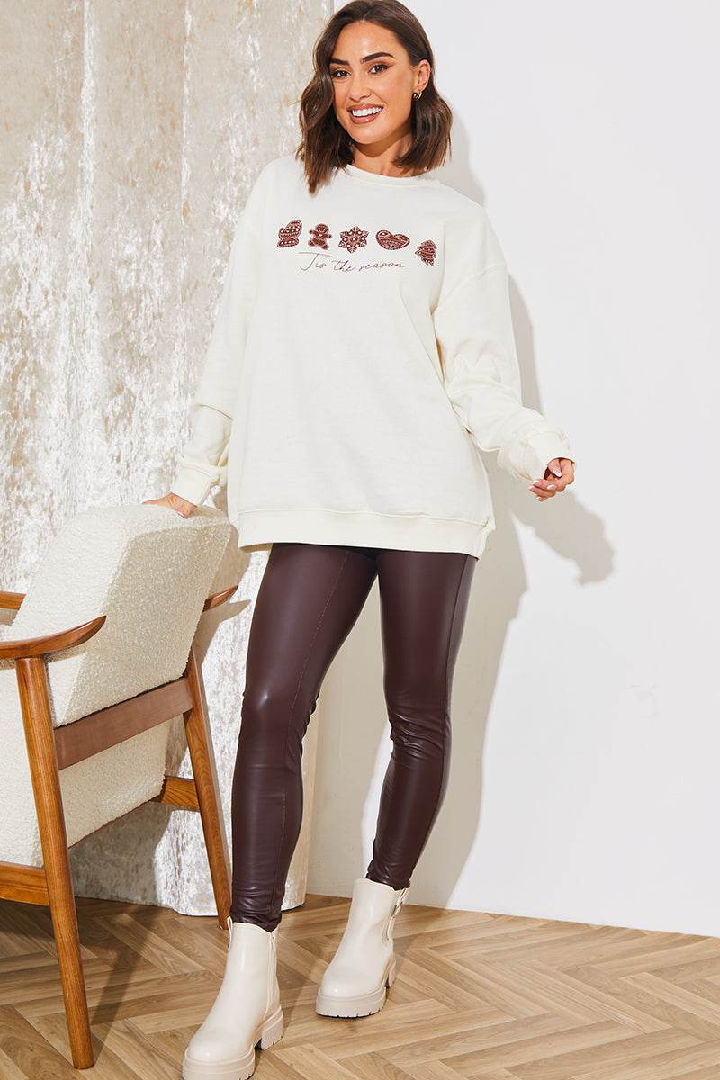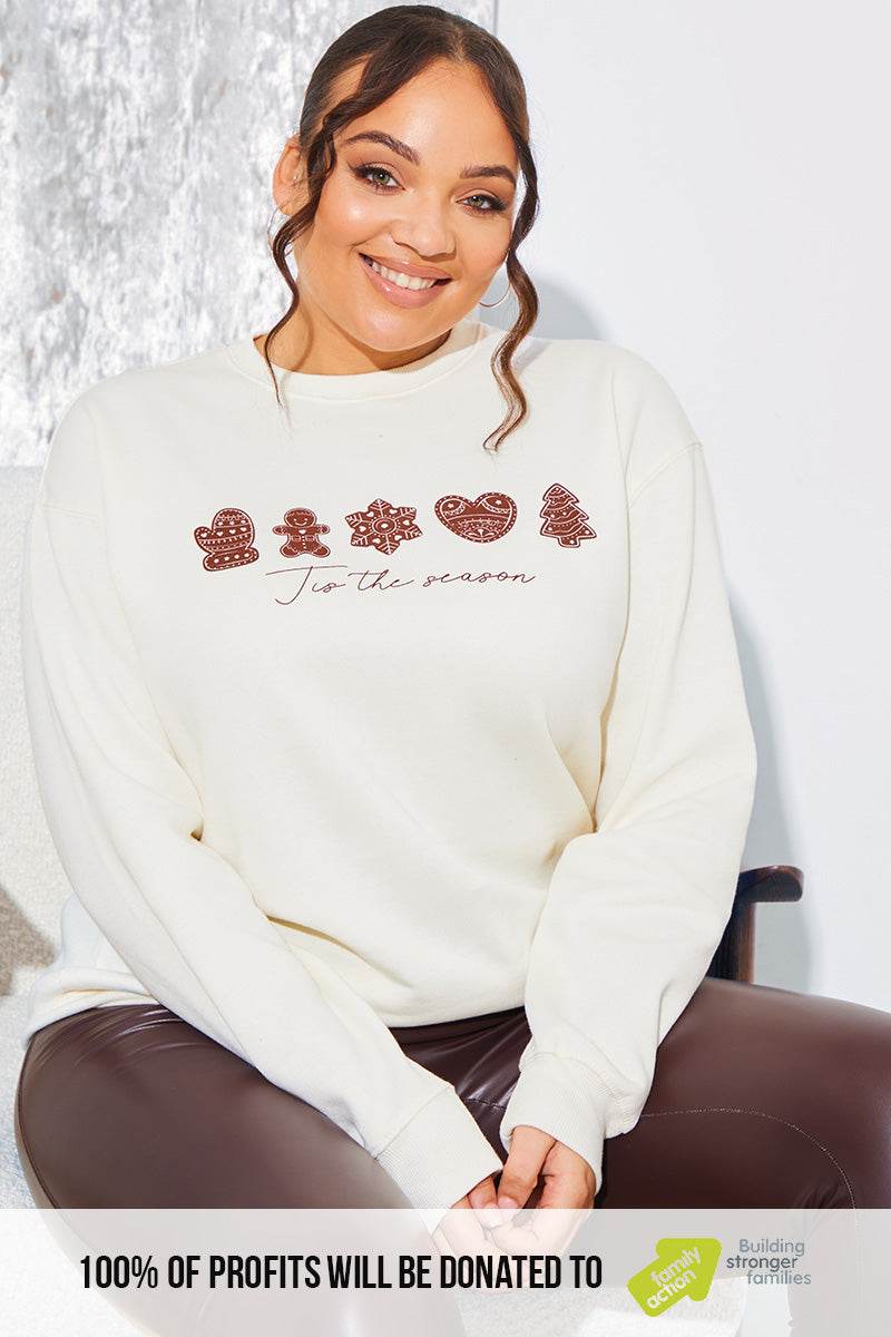 Get ready to sleigh the festive season in our Cream 'Tis the season' sweater. This snug sweatshirt is an essential this Christmas. blending comfort with a dash of elegance. ensuring you spread joy in style throughout winter.