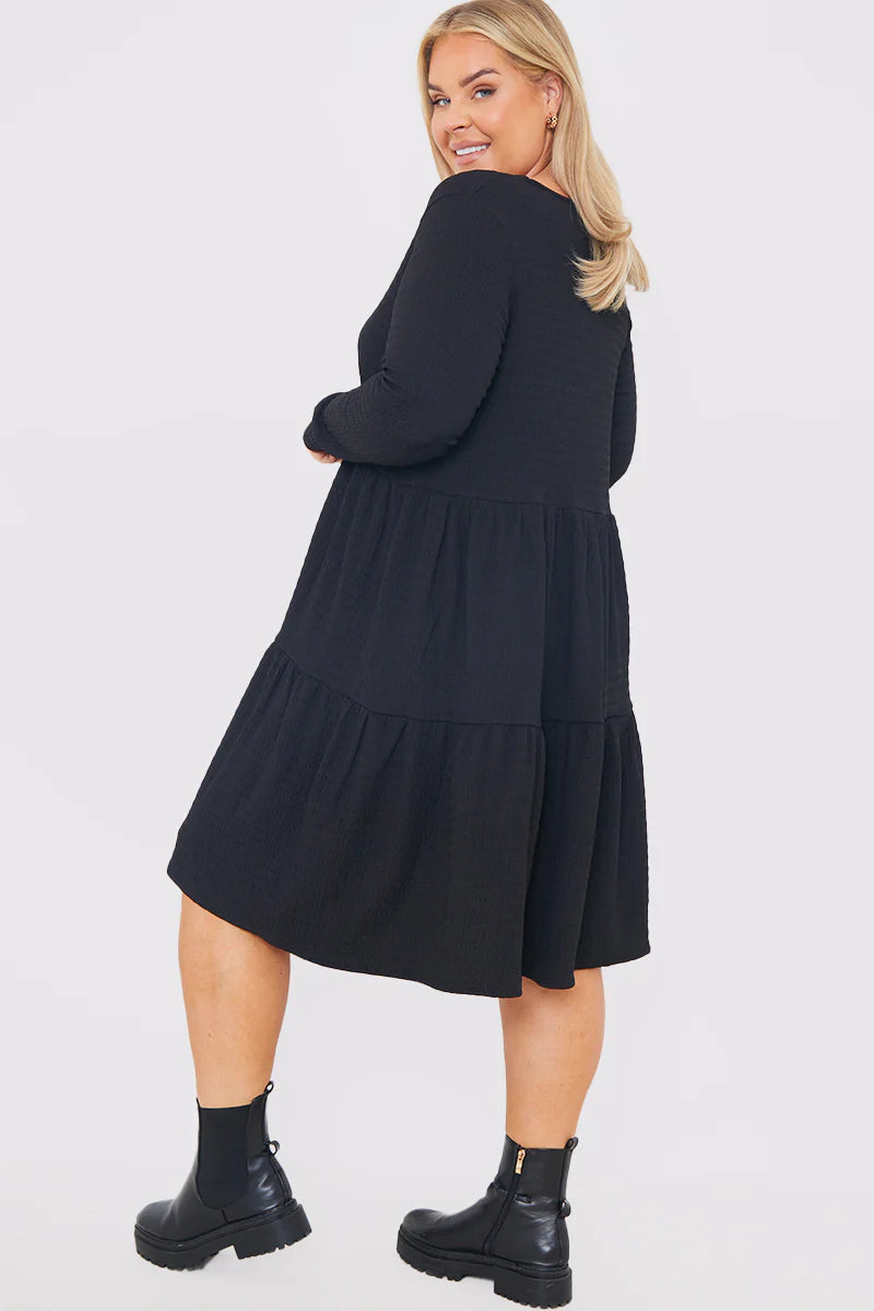 V neck Textured Smock Dress