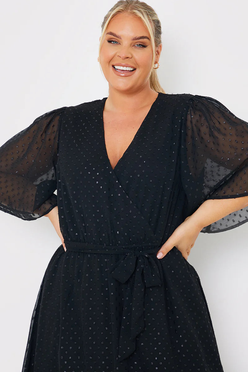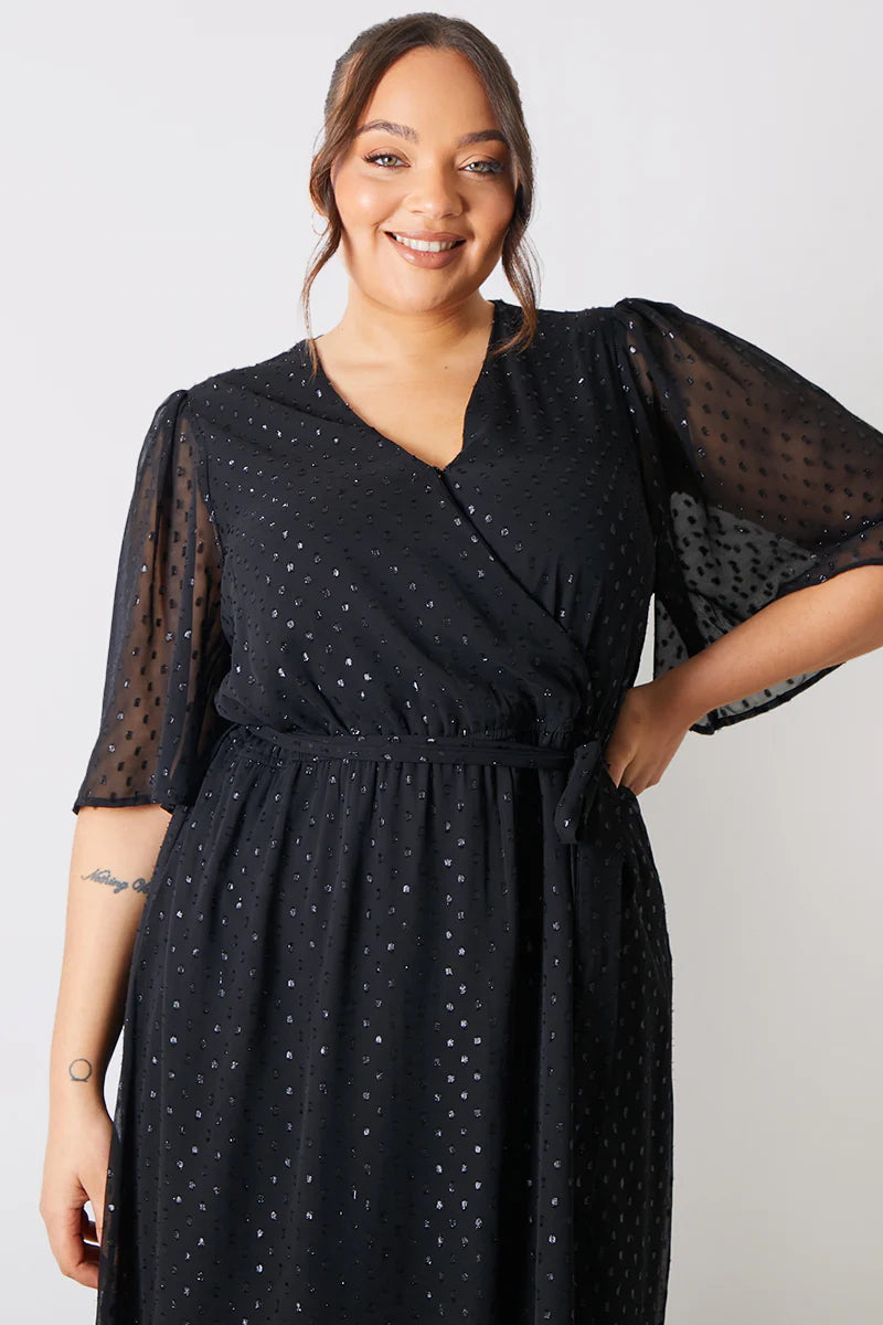 Metallic Dobby Wrap Midaxi Dress With Flutter Sleeves