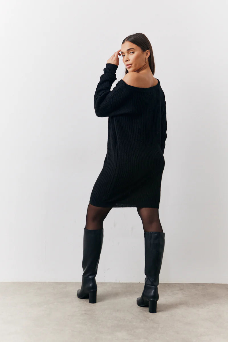 Get cosy this season with this gorgeous off the shoulder knitted dress. Style with knee high or ankle boots for a look we love.