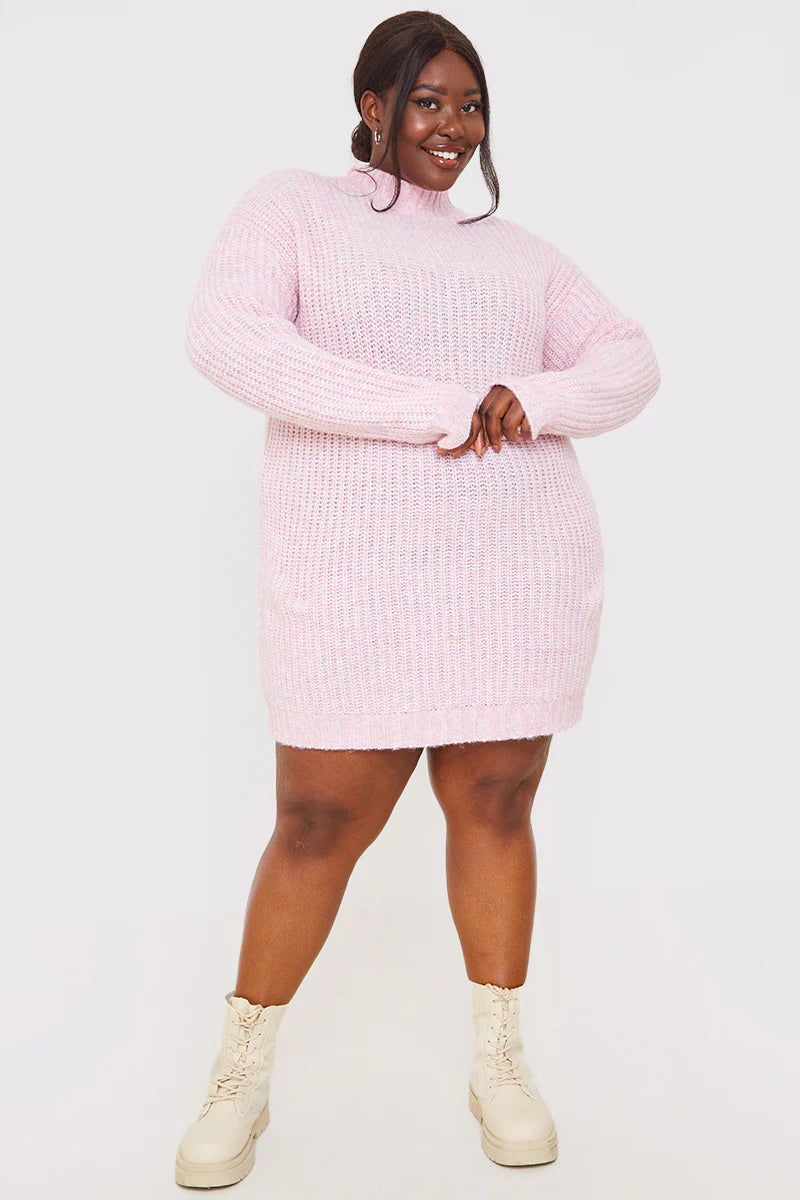 Recycled Space Dye High Neck Longline Knitted Jumper Dress