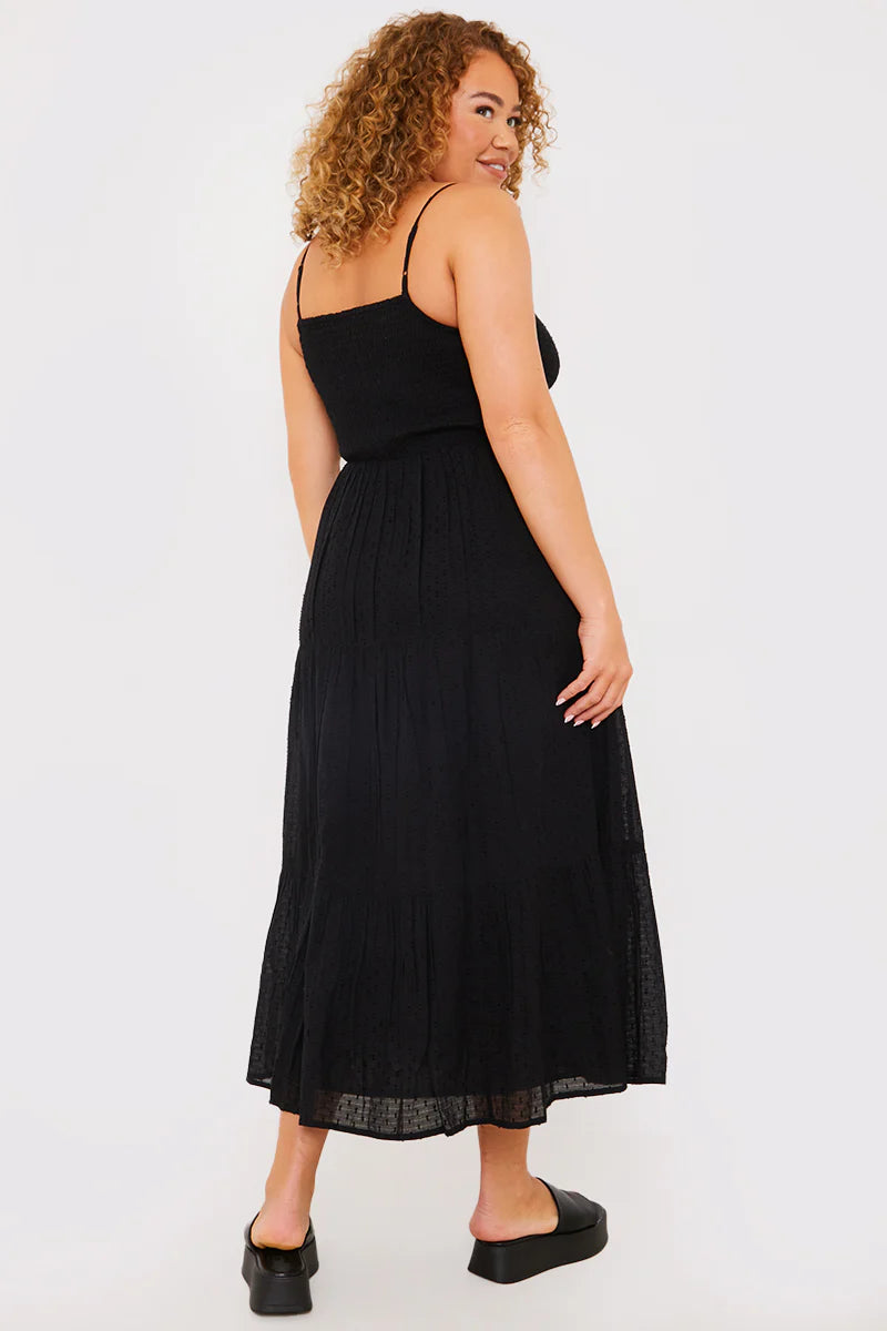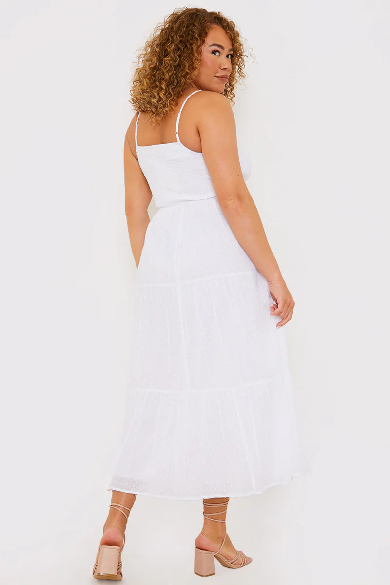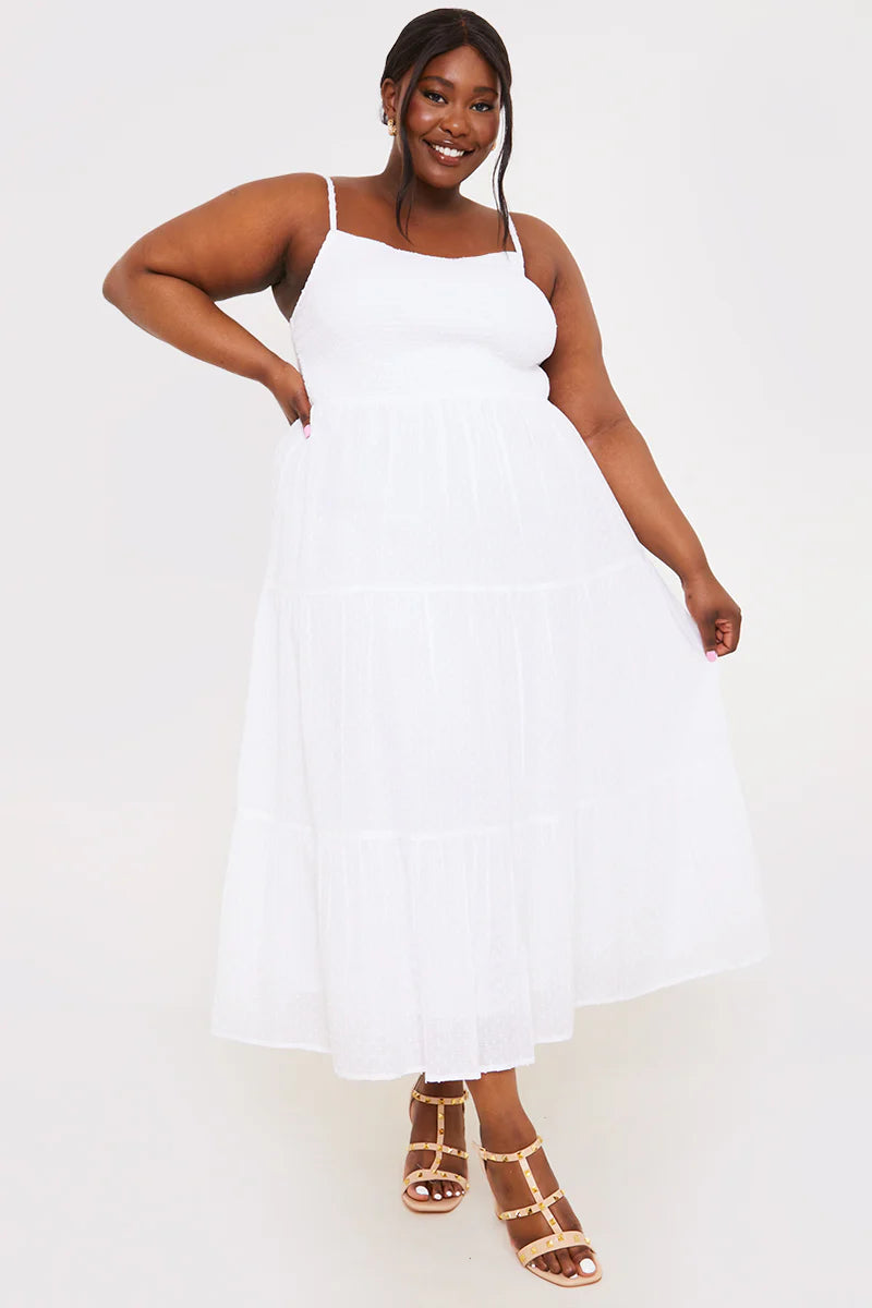 This dress will be a must-have piece in your wardrobe. Featuring textured material and a midaxi length. Style with chunky sandals and simple accessories for a summer look that we can't get enough of.