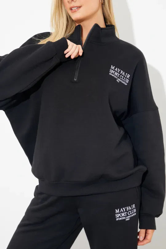 Half Zip Up Embroidered Mayfair Sport Club Jersey Sweater