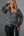 Zebra Plunge Button Front Blouse With Shirred Cuffs