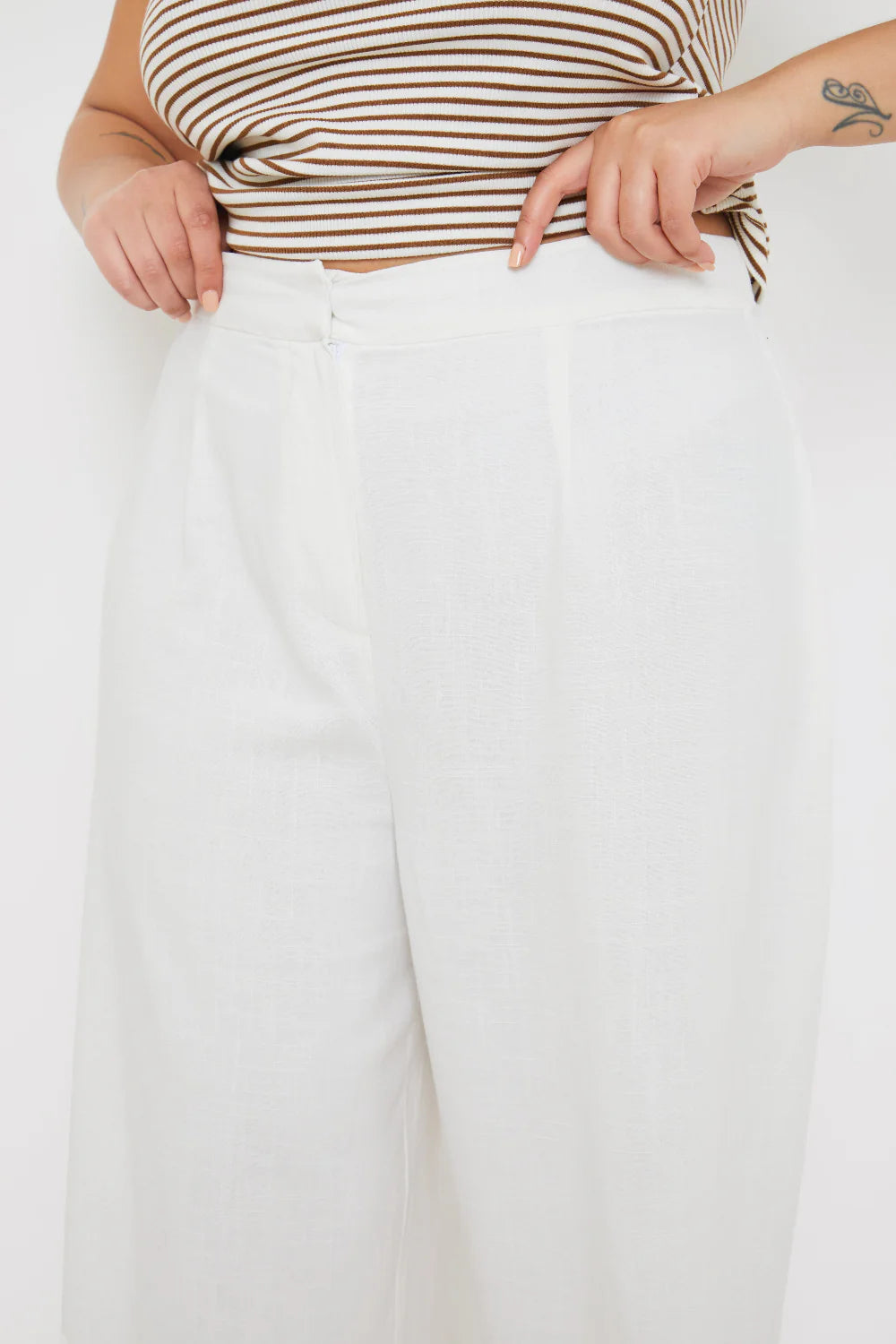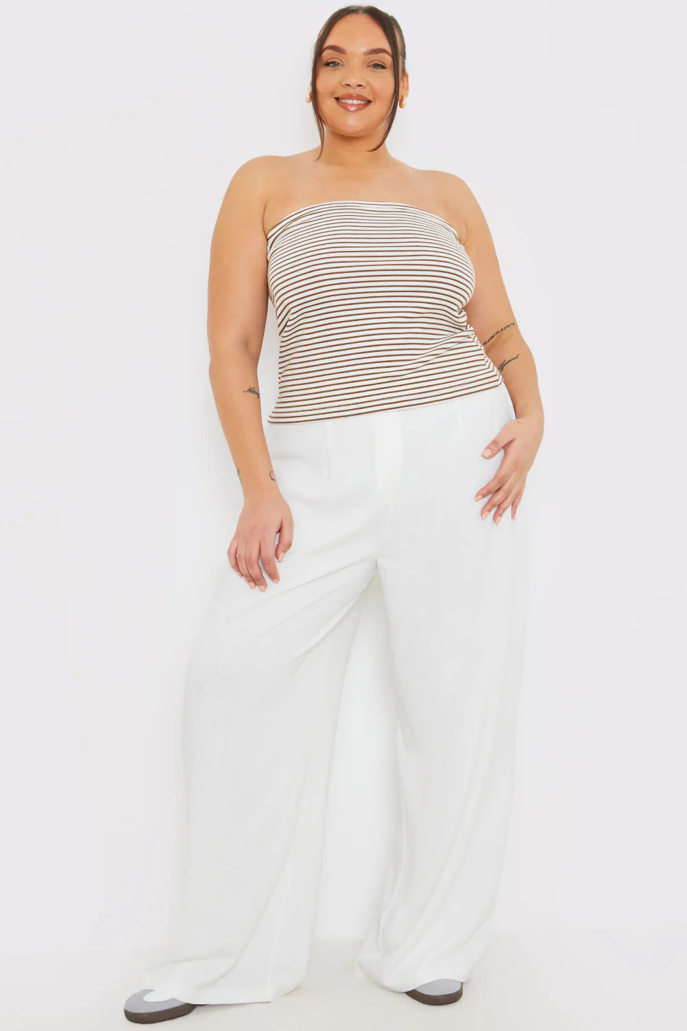 Linen trousers are the biggest trend of this season and our new cream linen look wide leg trousers will be perfect for all your summer look. Wear with a graphic tee. bodysuit or a cute blouse.