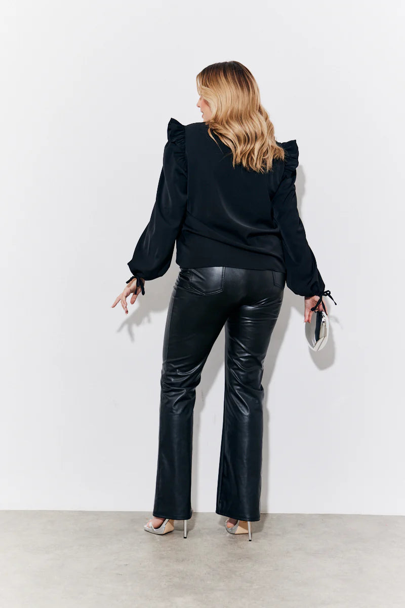 Elevate your simplest looks with our new black ruffle blouse. Wear with trousers and heels for a fancy look or with jeans for a vasual vibe.