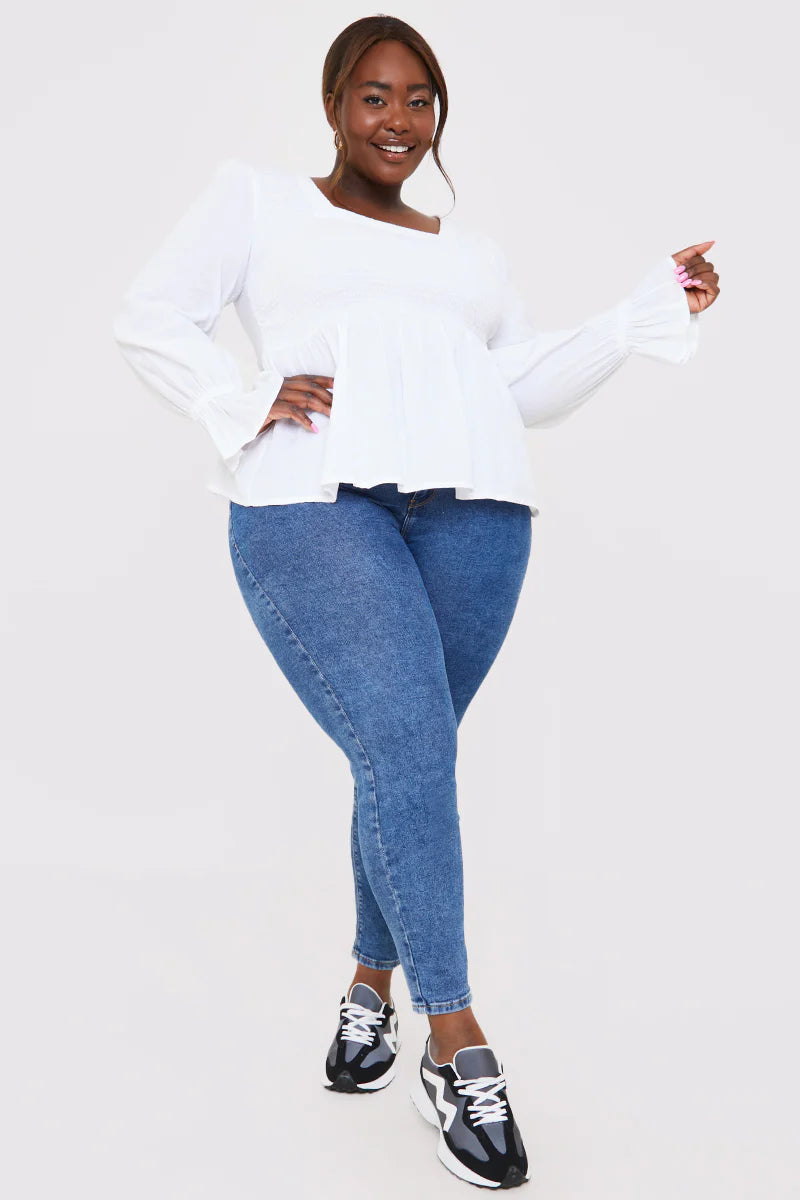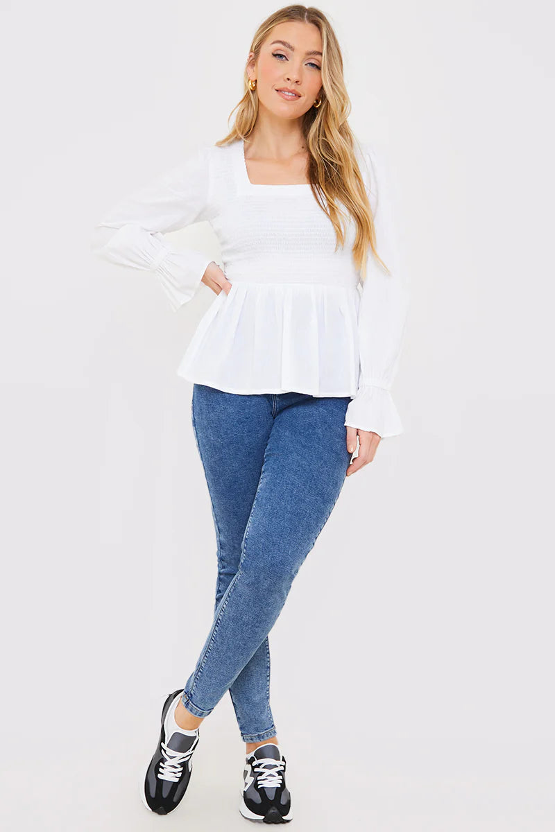 Shirred Square Neck Blouse