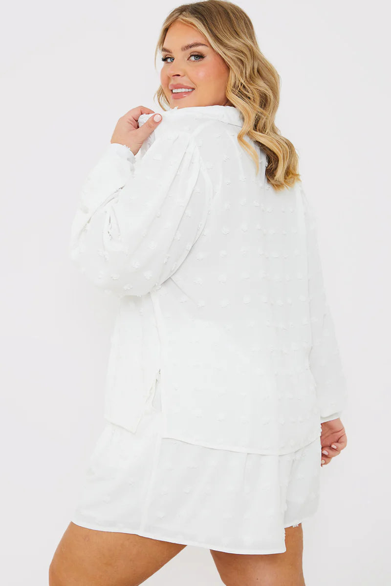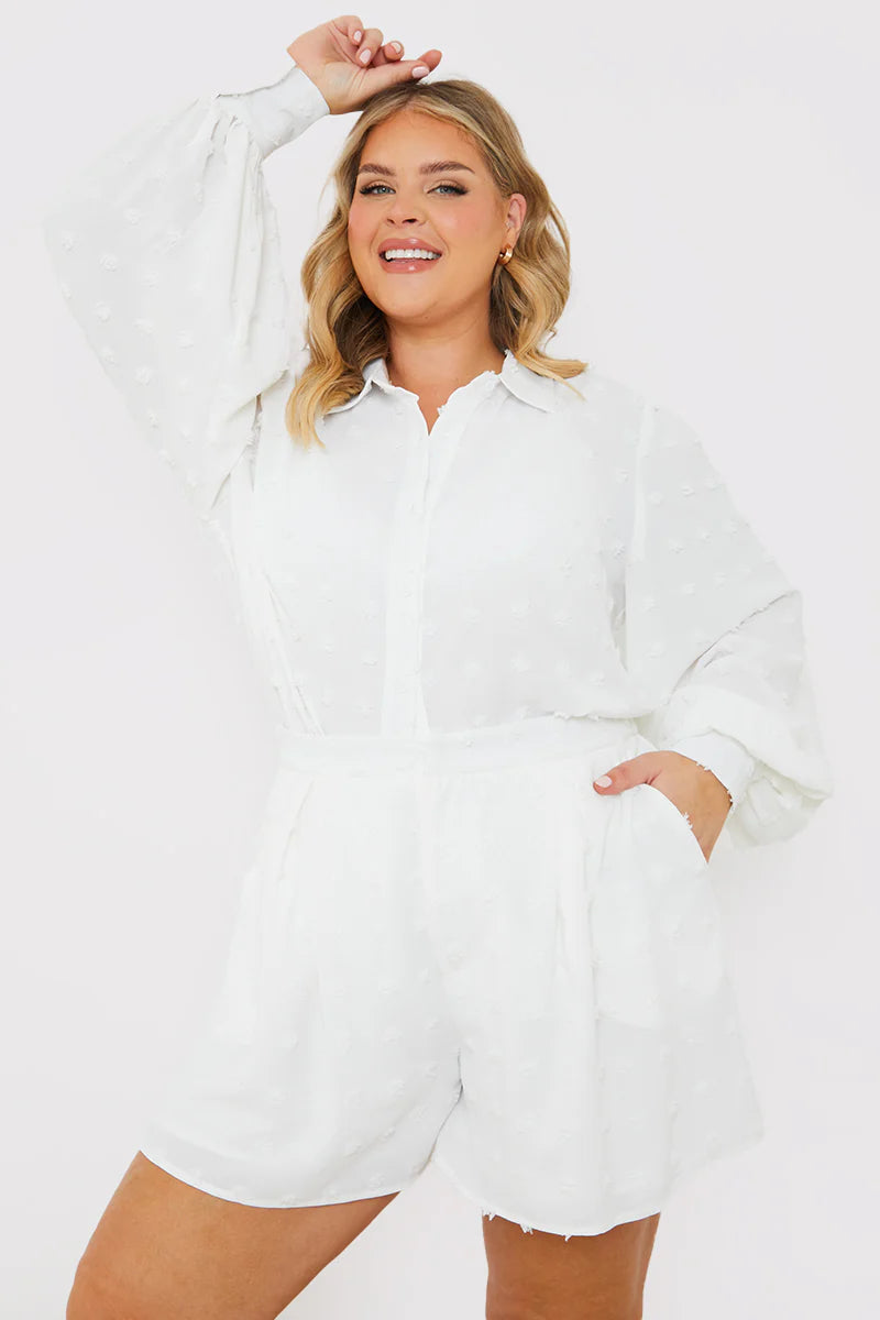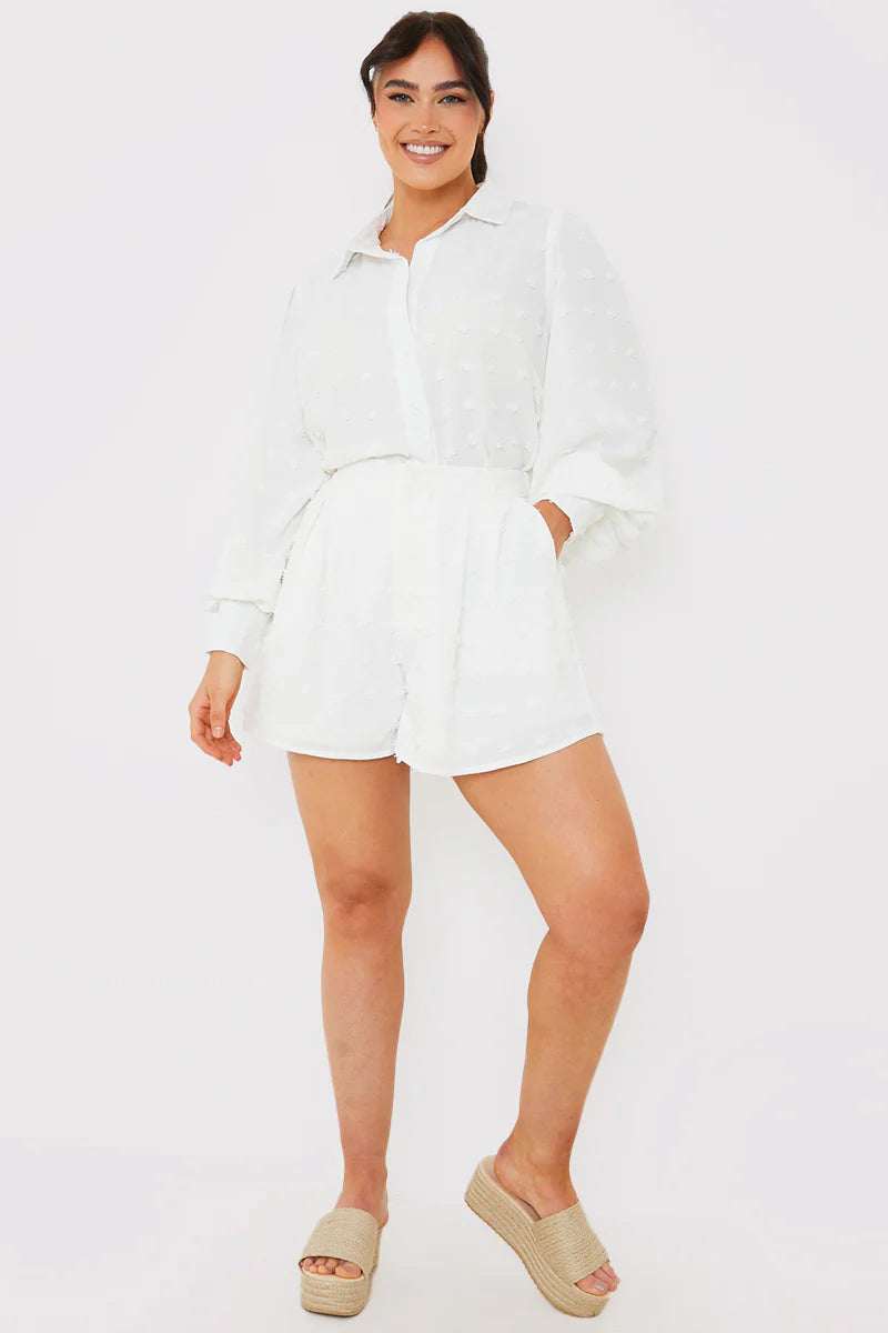We are loving this long sleeve shirt. In a white dobby material. pair with the matching shorts for a look that's fit for this summer season.