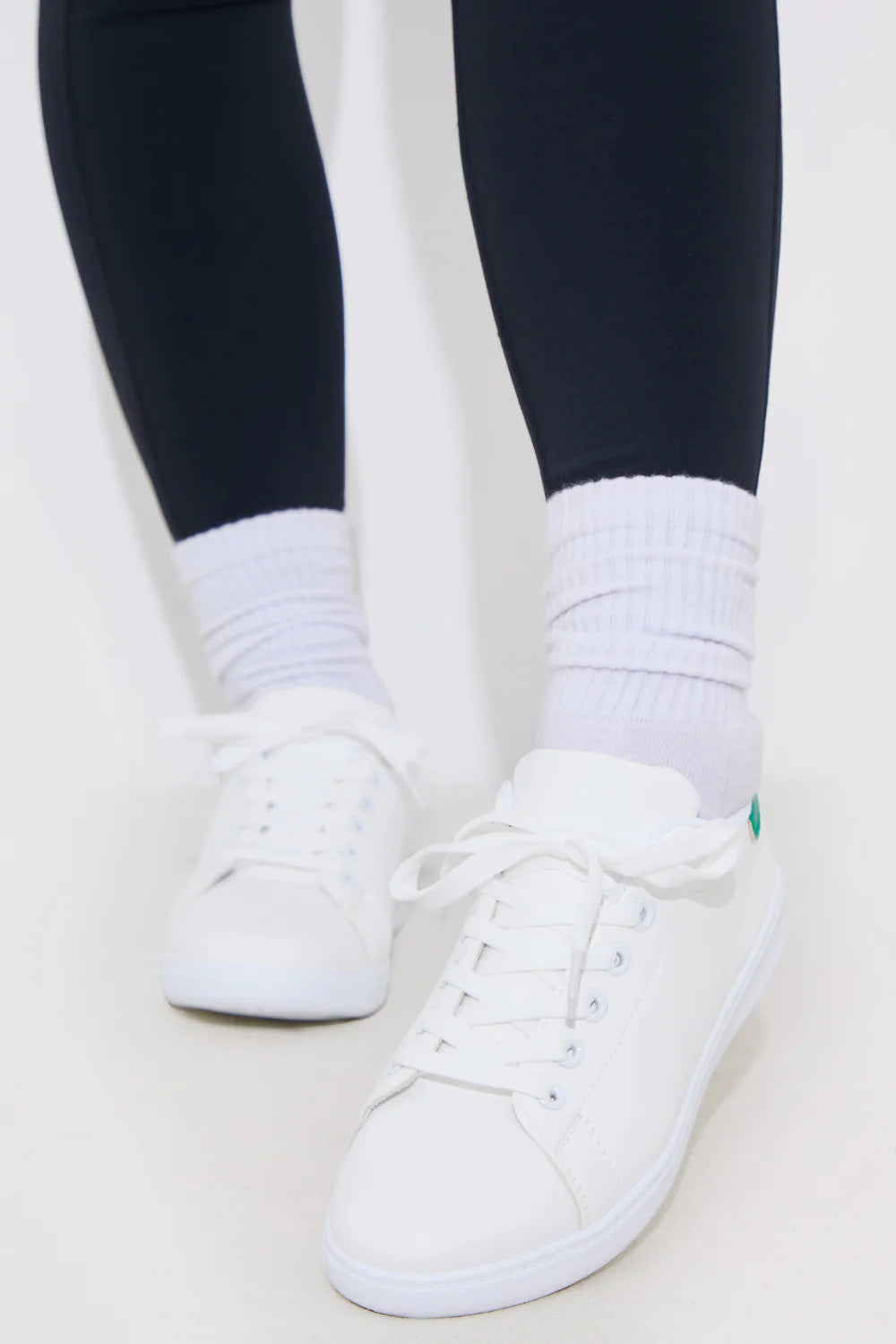 Step into the new season in style with these white contrast colour lace up trainers. Wear with PU leggings for a look we are loving.