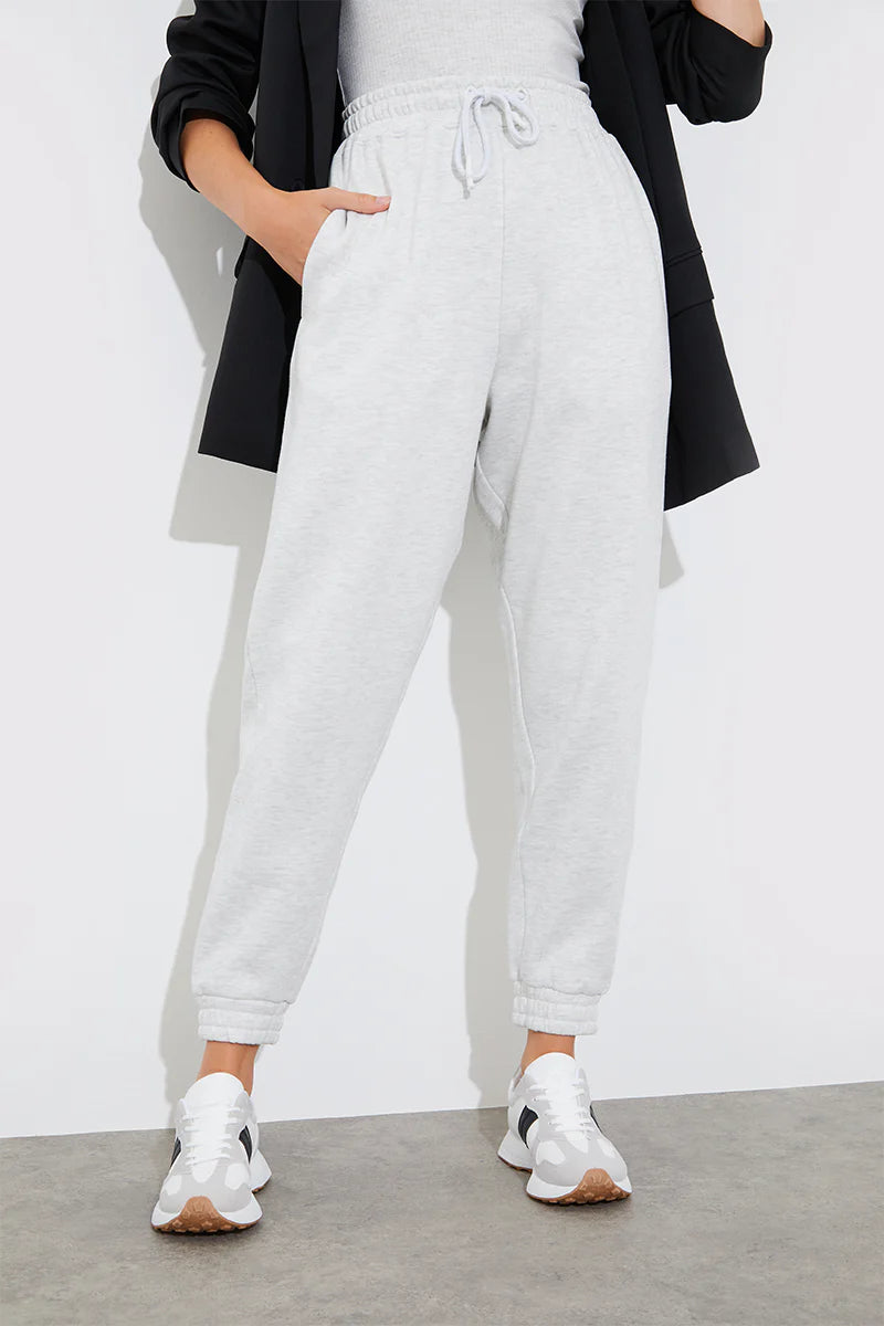 We are loving these oversized joggerst that are perfect for colder days. In a soft grey marl fleeceback fabric. pair with a sweatshirt for a cosy and stylish look.