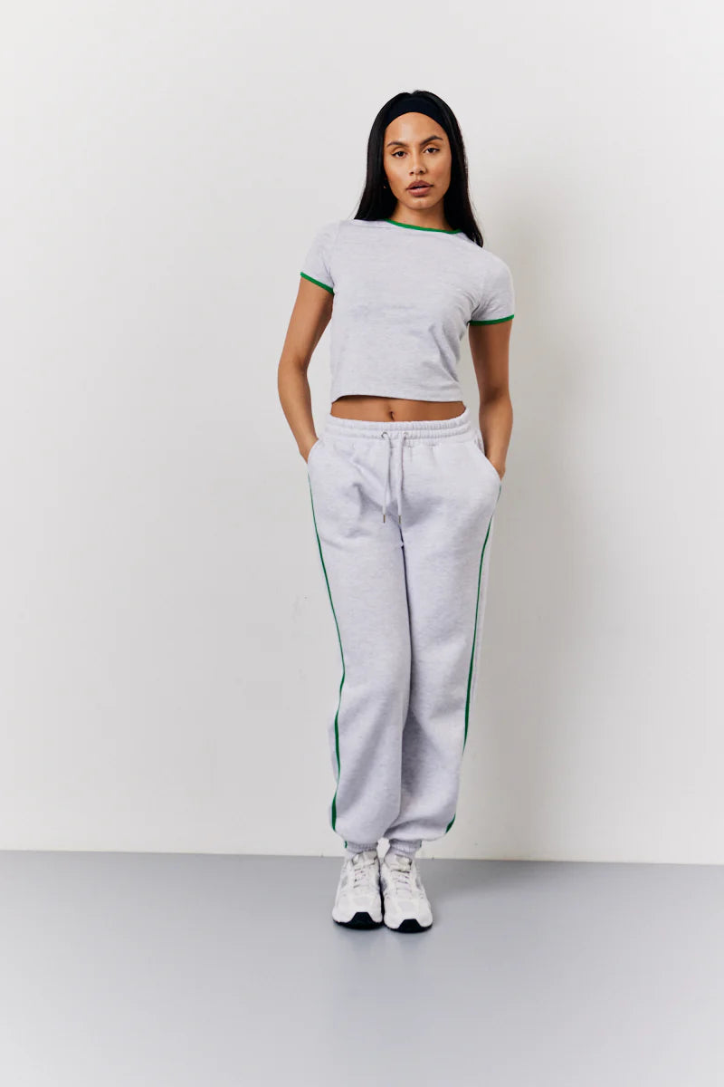 Grey Marl Fits Side Stripe Cuffed Co-Ord Jogger