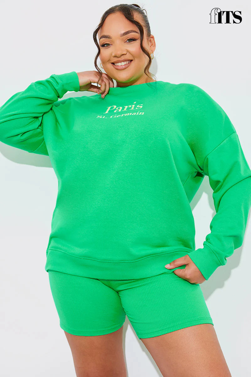 Add some bold colours to your everyday wardrobe with this sweatshirt featuring a 'Paris' embroidered slogan. layer with our matching t-shirt and cycle shorts for the perfect everyday look.