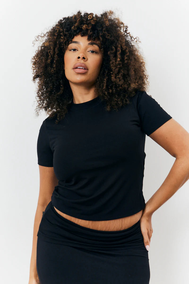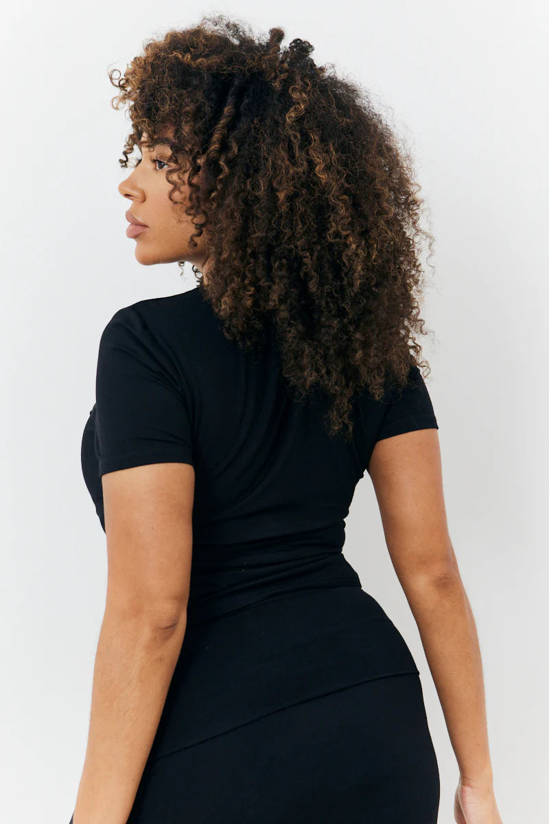 Our new black sculpting short sleeve t-shirt from the fits collection is your new essential. The perfect foundation for everyday looks. this go-to crew neck top is designed with added stretch to fit you flawlessly. Pair with jeans and trainers or a skirt and heels to suit your style.