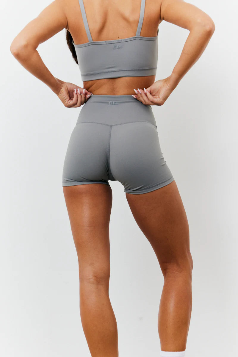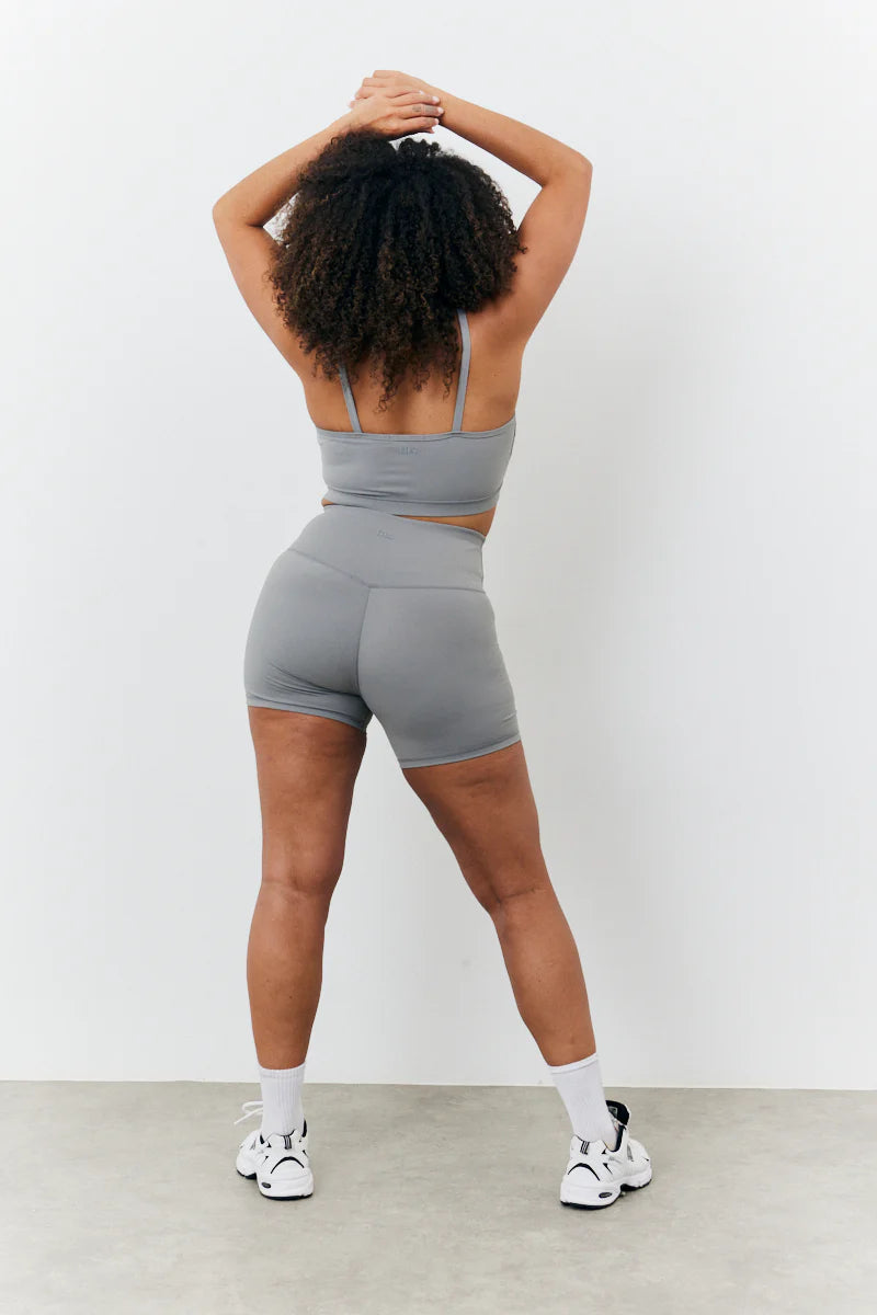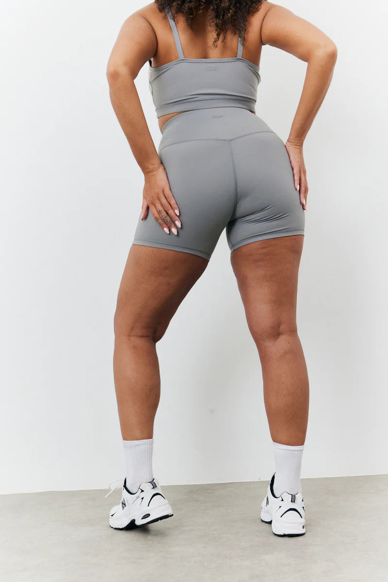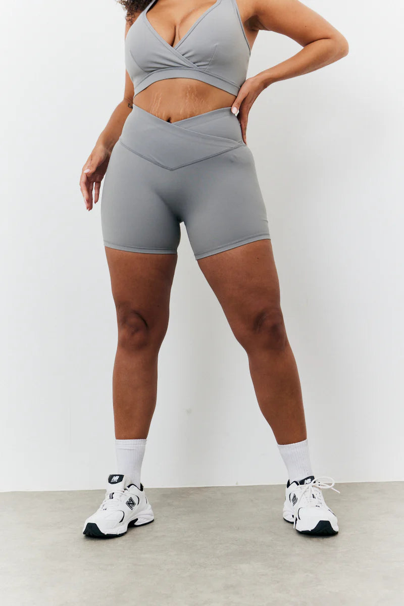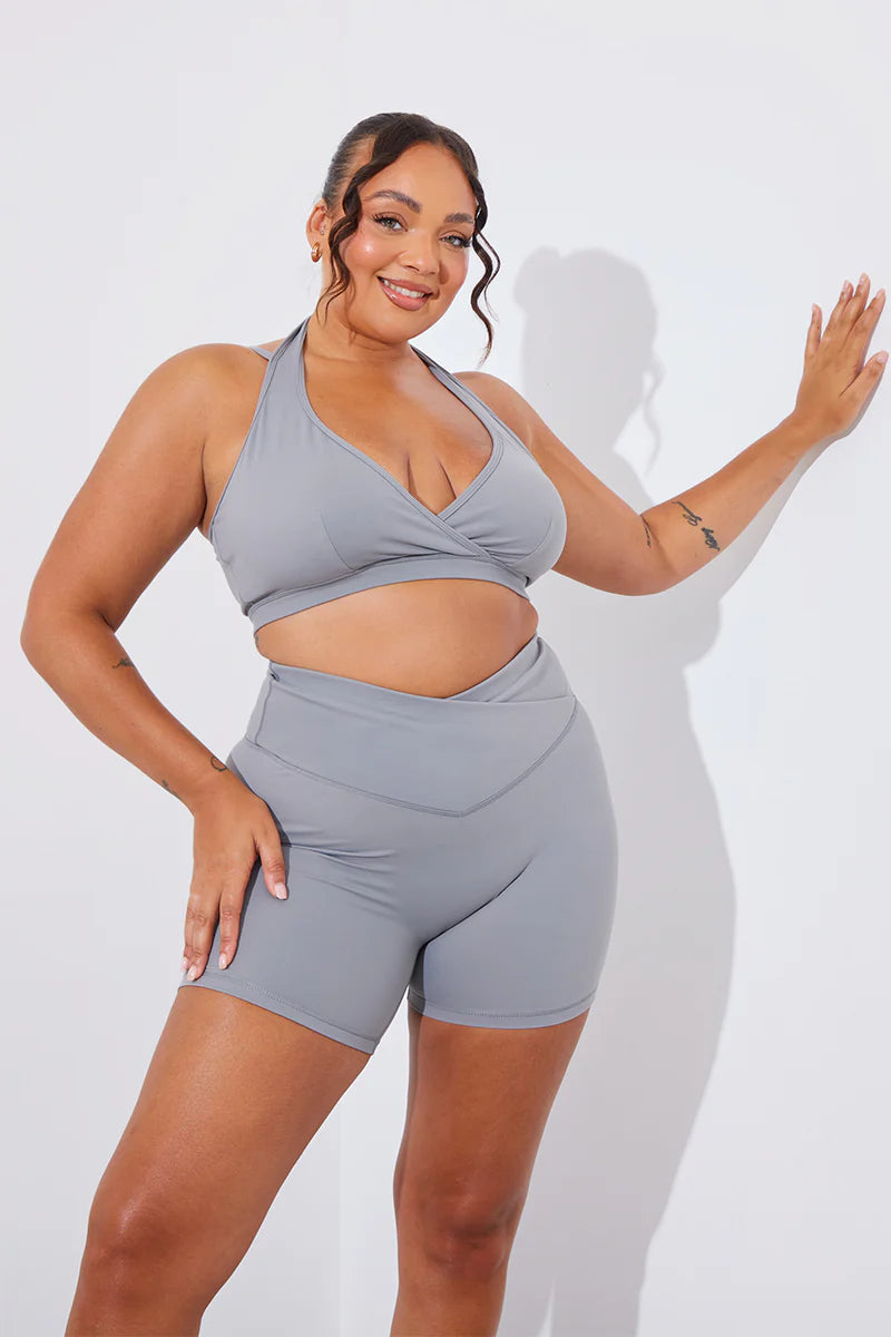 Get ready for summer with our new grey soft touch crossover waist cycling shorts from our new fITS Summer Active Collection. The crossover detailing will take an easy fit to another level. You will be feeling comfy and looking cute all summer. Wear with the matching top or jacket for a vibey look.