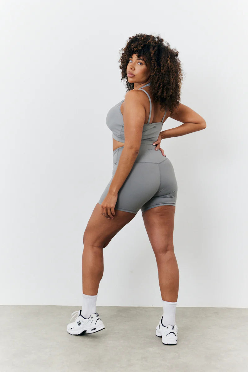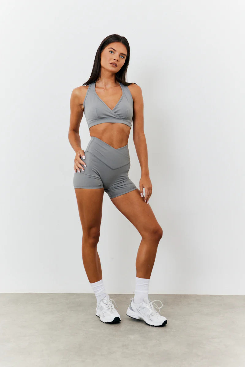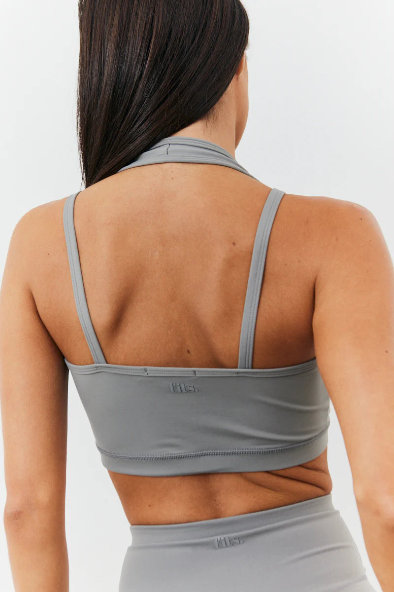 Say hello to our new fITS grey soft touch medium support halter neck sport bra from our new fITS Summer Active Collection. You will be feeling comfy and looking cute all summer. Wear with the matching shorts or with the matching leggings and jacket for a look that is ready for those chilled summer days.