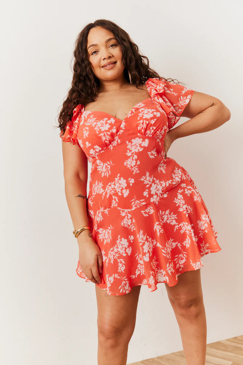 Florals are a must for the spring season and this coral floral print mini dress is guaranteed to be your new wardrobe fave. Featuring flutters sleeves that drape gracefully from the shoulders. pair with heels and a cute bag to complete the look we are loving.