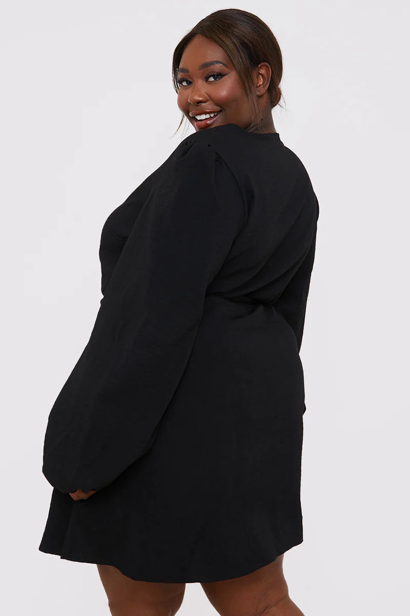 We are obsessed with this dress with balloon sleeves and a tie waist. the mini dress is perfect with boots and a statement bag.