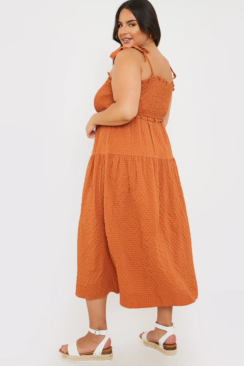 Bandeau Shirred Bust Tie Strap Midaxi Dress
