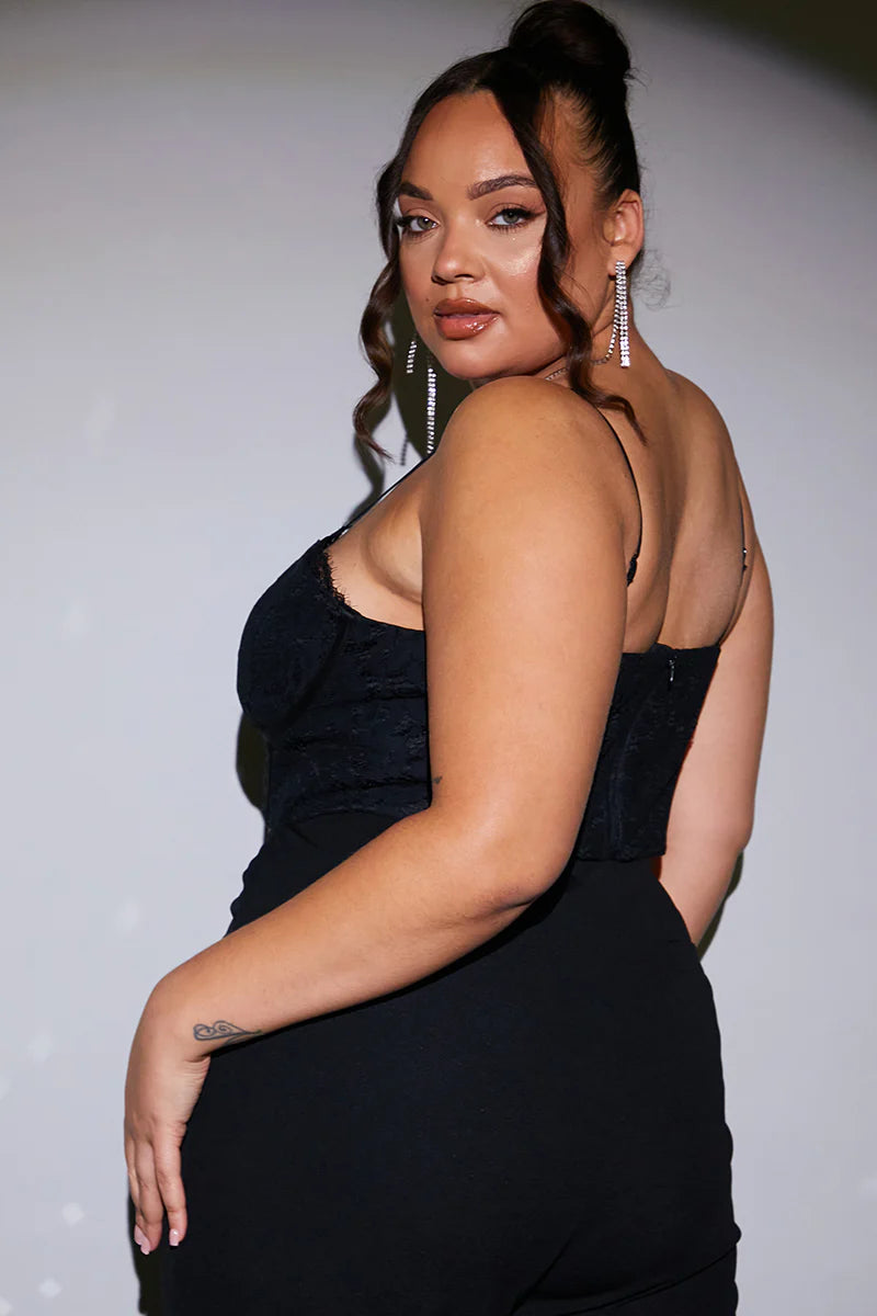 This crop top is a must have this season. In a black lace material pair with jeans and heels for the perfect look this party season.