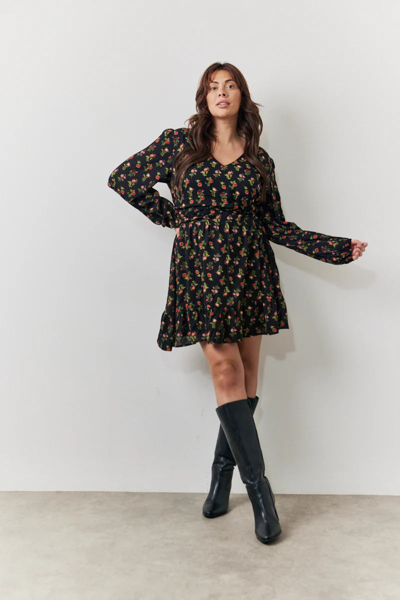 Get ready for all the compliments with our rose print skater dress. With a flattering wrap design and floaty chiffon material. this is the dress for your next occasion. Team with ankle boots or simple heels to complete the look.