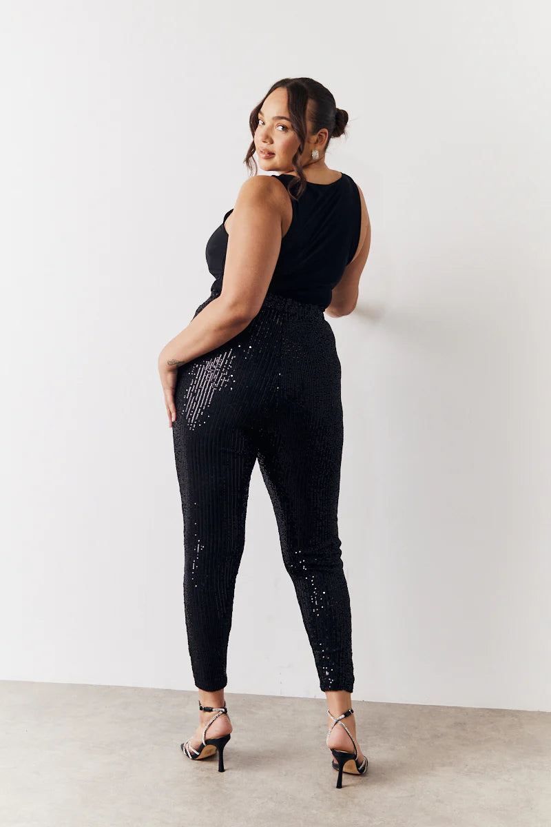 These black sequin leggings are the perfect pick for the upcoming party season! Pair with heels and a bodysuit for a glam look we are loving.