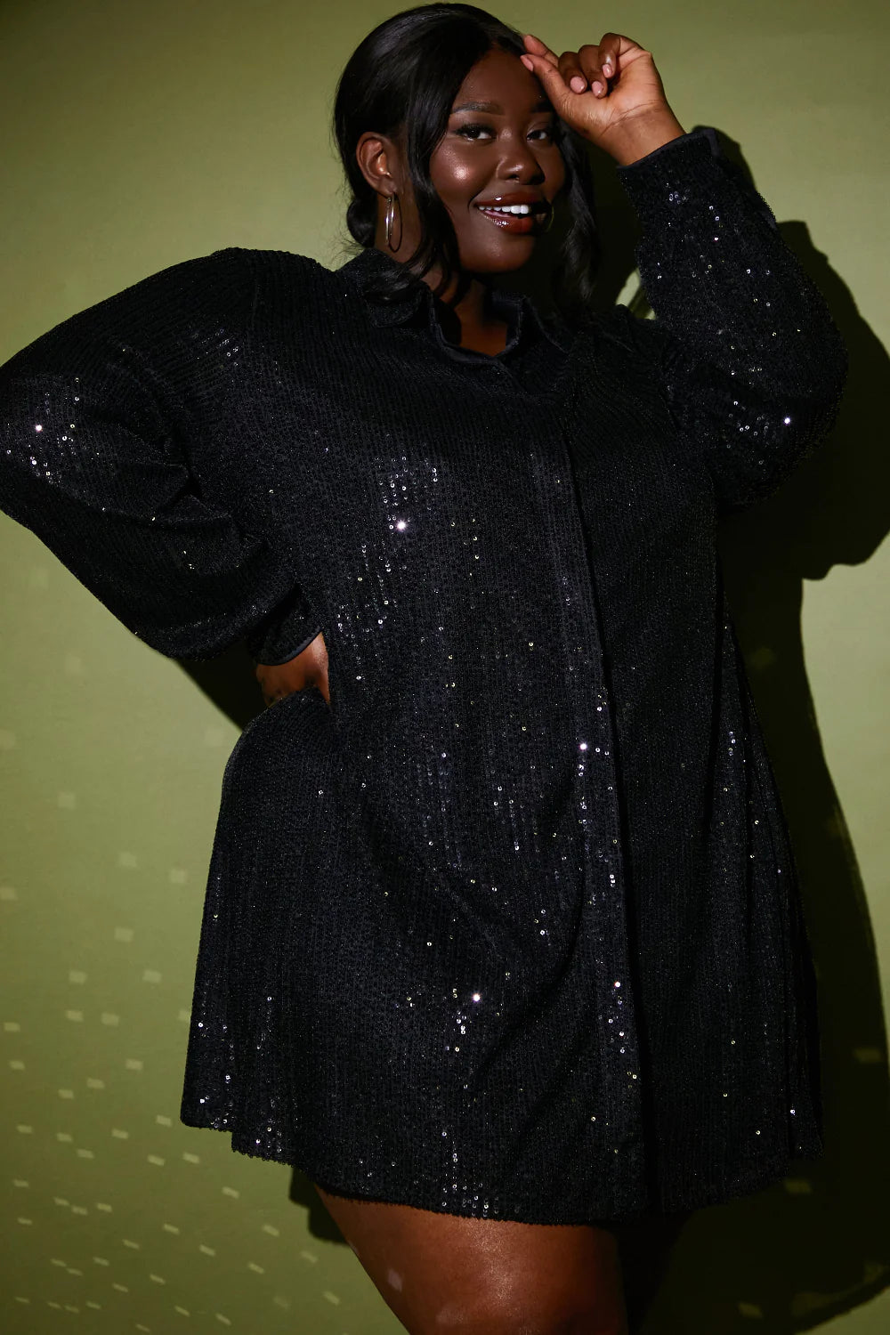 Black Sequin Oversized Shirt Dress